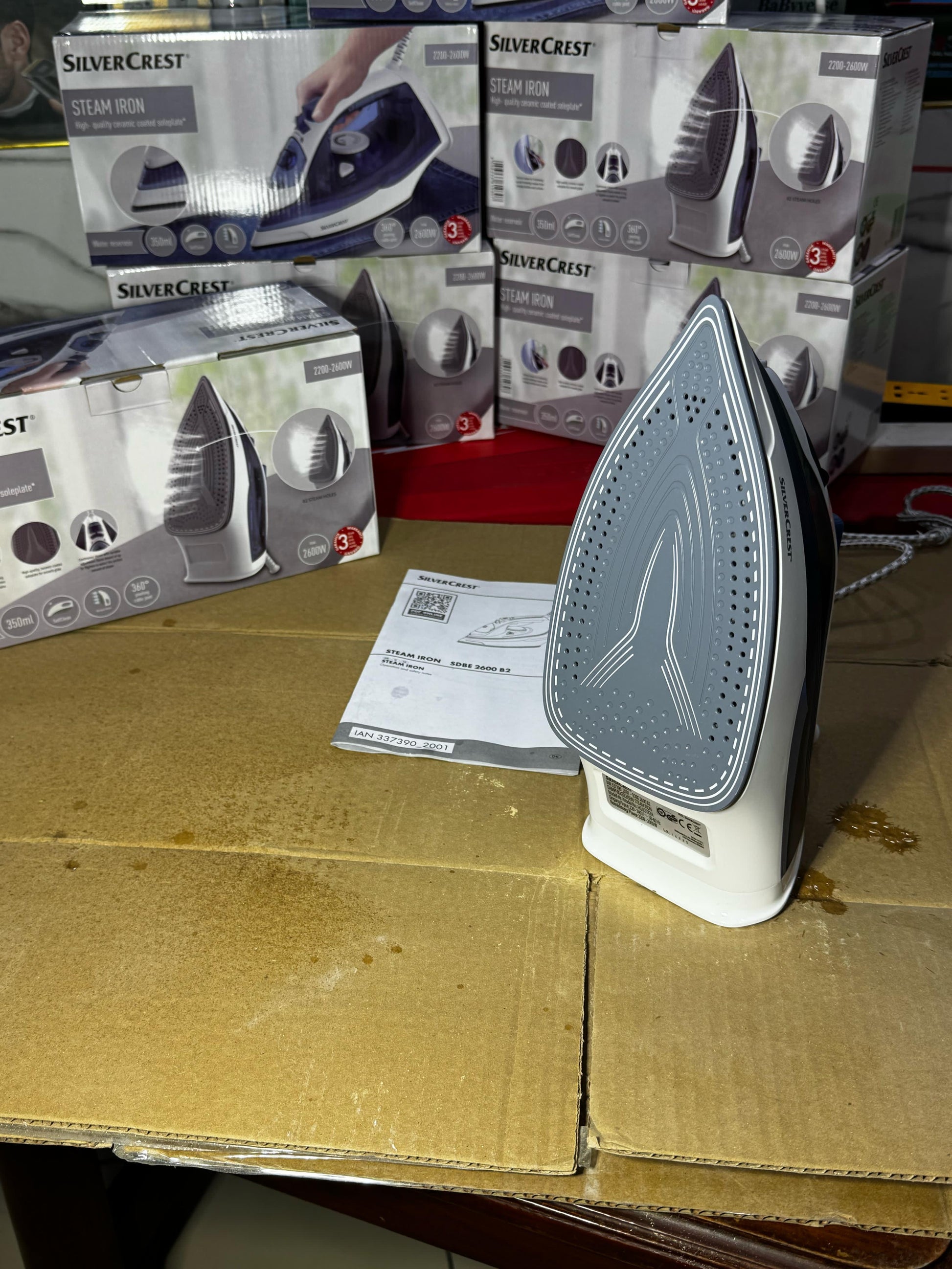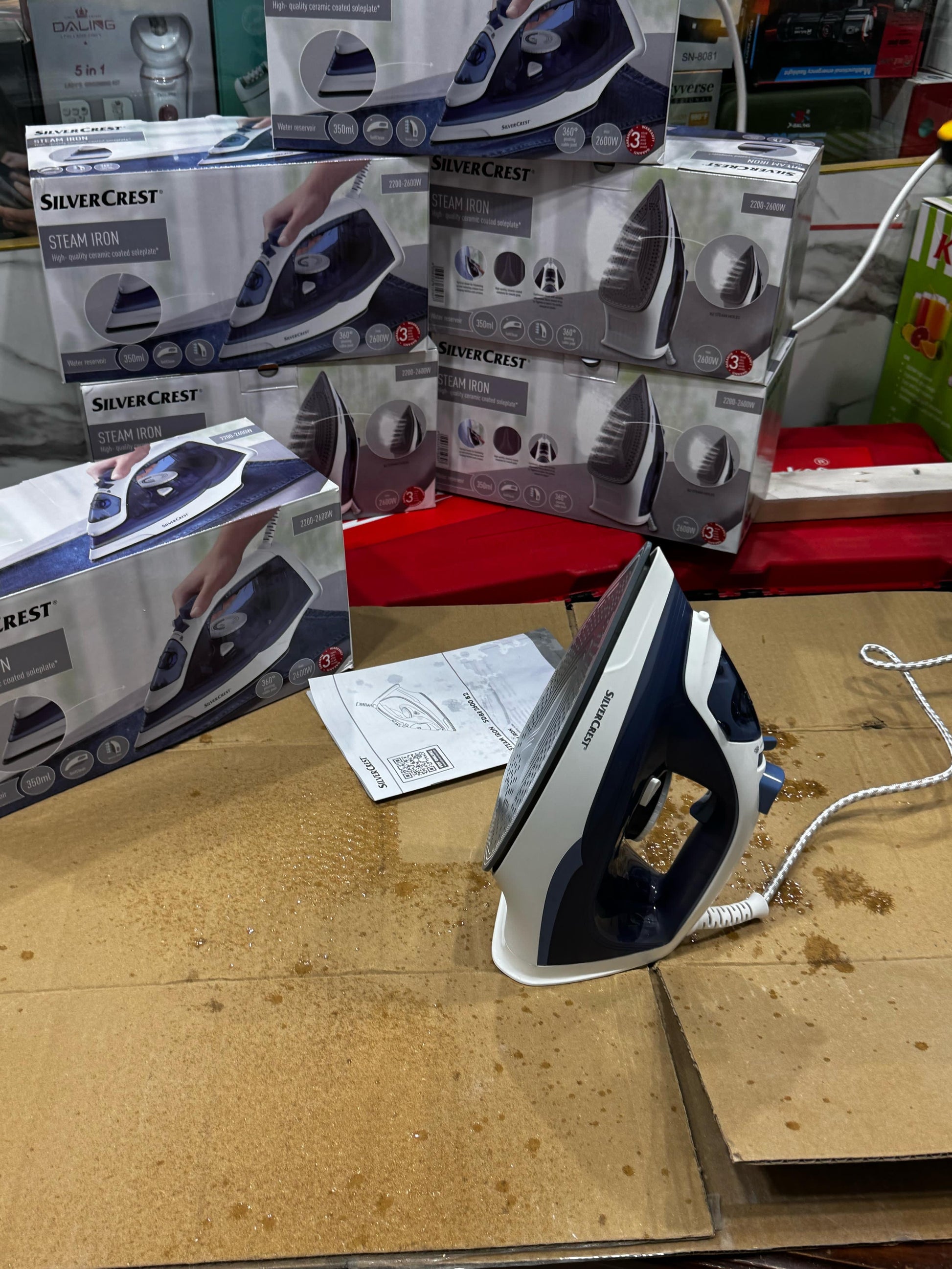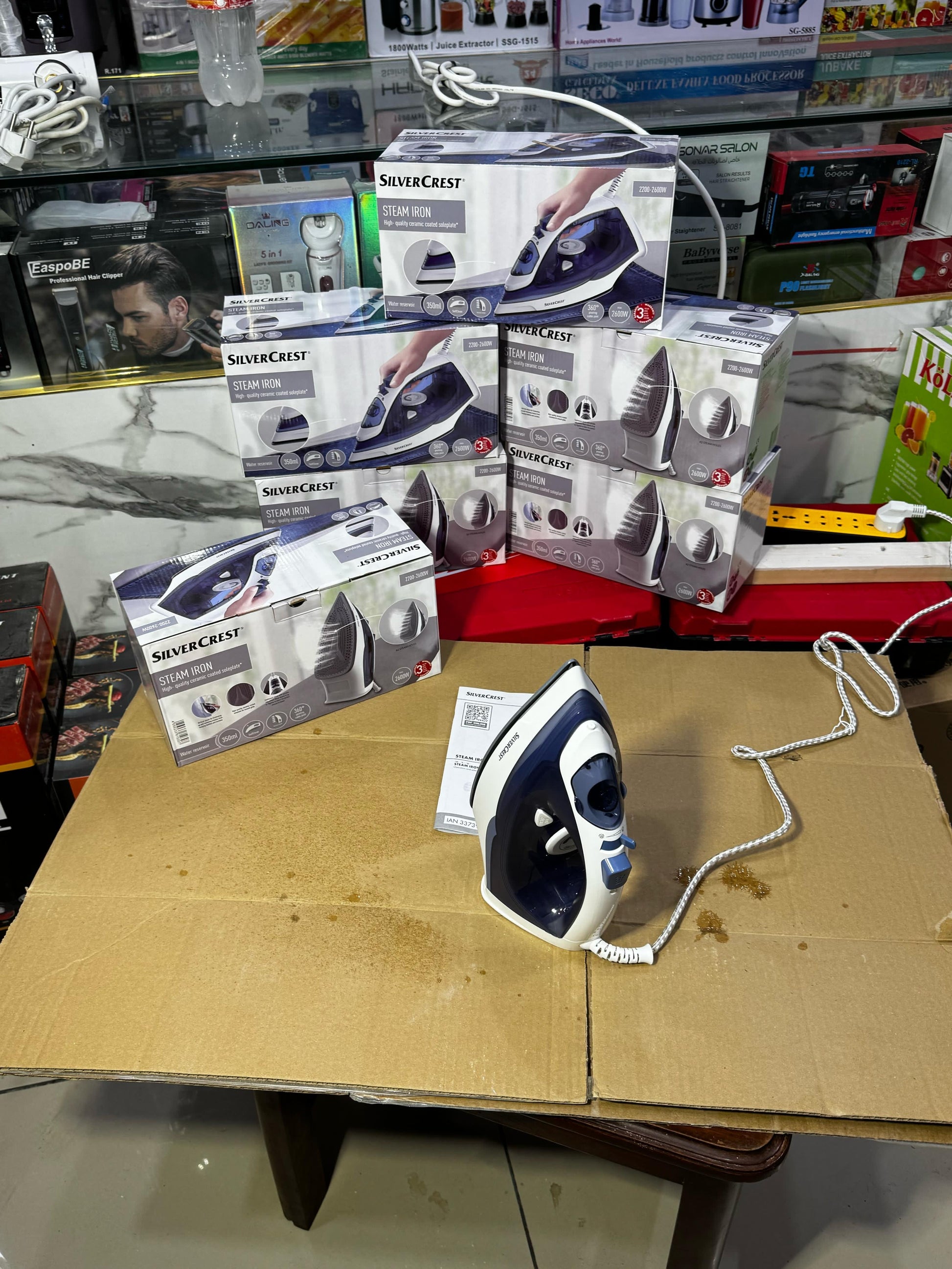 Introducing the German Lott imported Silver Crest Steam Iron - a high quality, expertly crafted iron with a non-stick ceramic coating for effortless and efficient ironing. The best choice for achieving perfectly pressed clothes.