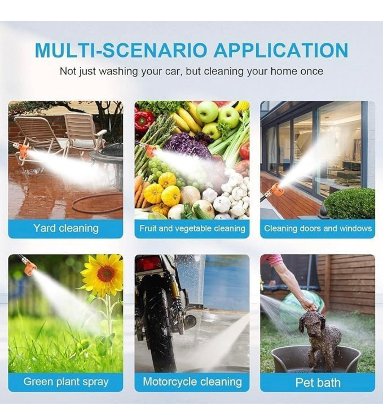 - 🔫 3 IN 1 Multi-Function Nozzle: Our high pressure washer features the adjustable nozzle: 0°, 40° slant direction, foam jetting or 0° heavy flow | Multiple spray nozzle lets you switch between varying degrees of water stream intensity you easily and quickly clean all your outdoor spaces and gear | ☀Cleaning For: Cleaning and maintenance of various motor vehicles, engineering vehicles, engineering machinery and agricultural machinery supporting products.